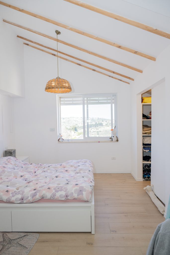 חדר הורים גדול עם חדר ארונות ושירותים מקלחת פרטיים.